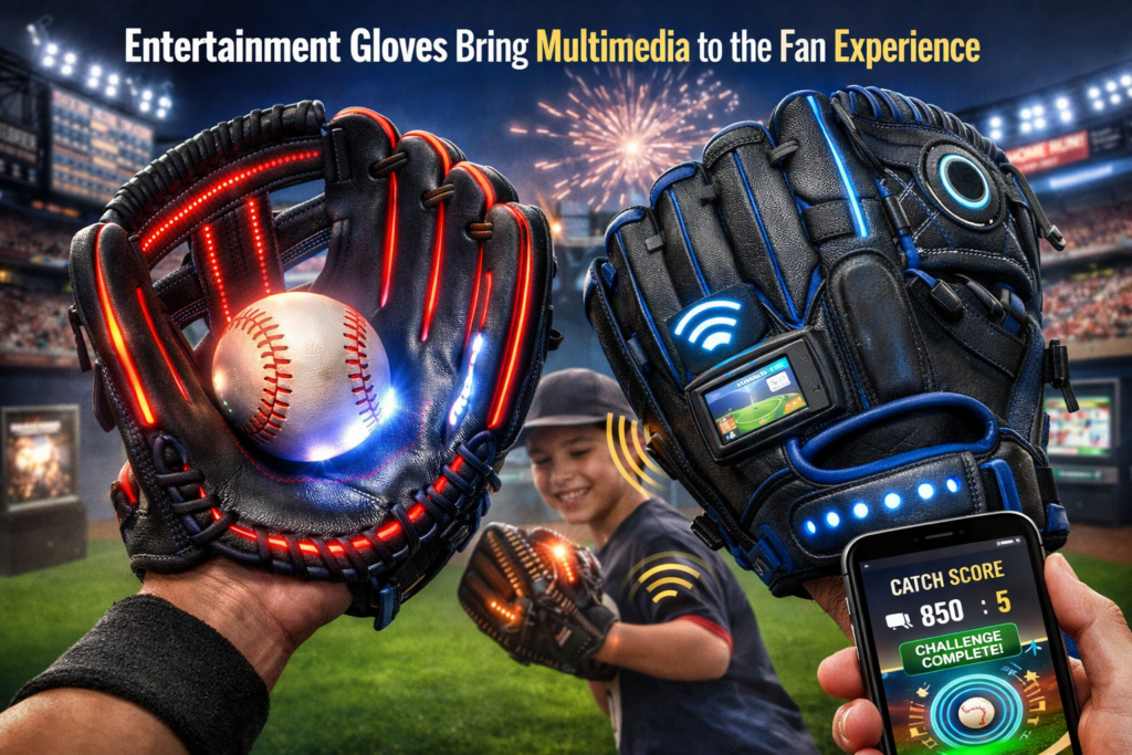 While most baseball equipment innovation focuses on professional performance, a new category is emerging: the entertainment glove. Designed for fans, young players, and interactive experiences, these gloves embed LED lighting, haptic feedback, and Bluetooth-connected sensors to transform catching and fielding into a multimedia experience.