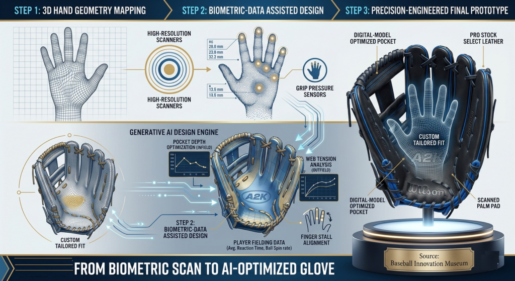 Recent industry reports and prototype systems (Wilson Sporting Goods, 2025; Rawlings Sporting Goods, 2026) suggest that this process will soon evolve further into AI-assisted design, where glove structure—such as pocket depth, web tension, and finger stall alignment—is automatically optimized based on player biomechanics and fielding data.
