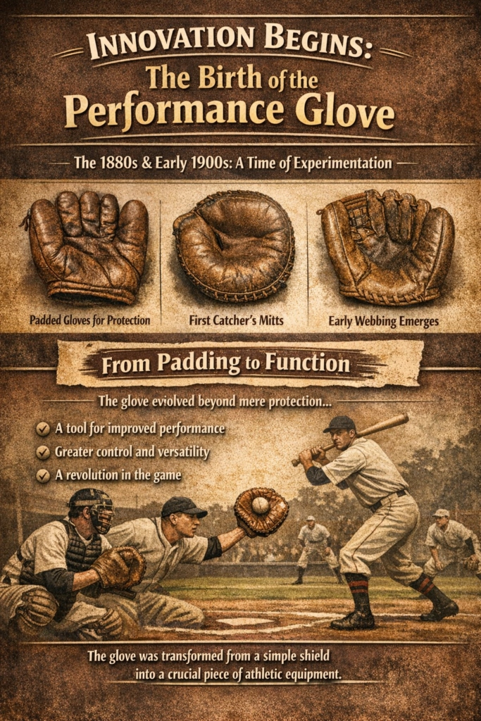 | 1875 | Flesh-Colored Glove (Charles Waitt) | Players attempted discreet protection; early leather work gloves repurposed from trades. |
